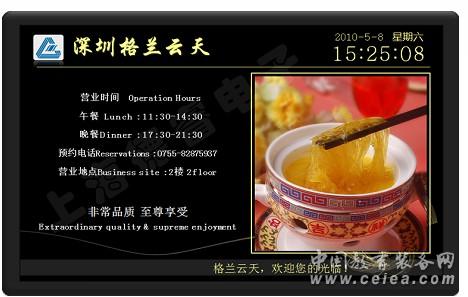 多功能廳門口安裝1臺43英才的高分辨率高清晰度的等離子顯示屏。 通過合理的位置分配后,該系統可與客戶很好的集成在一起,可實現客人前臺登記完畢后到房間就可以看到歡迎信息,也可與收銀臺匯率顯示控制結合起來。實施信 息發布系統以后,可以很好的協作各部門解決很多的問題,可大大的降低成本提高效率,發布每天的宴會資訊、酒店宣傳信息的同時還可發布天氣預報、匯率信息、 客戶產品新聞發布會議等,這些都可以及時的發布到指定的顯示終端上。