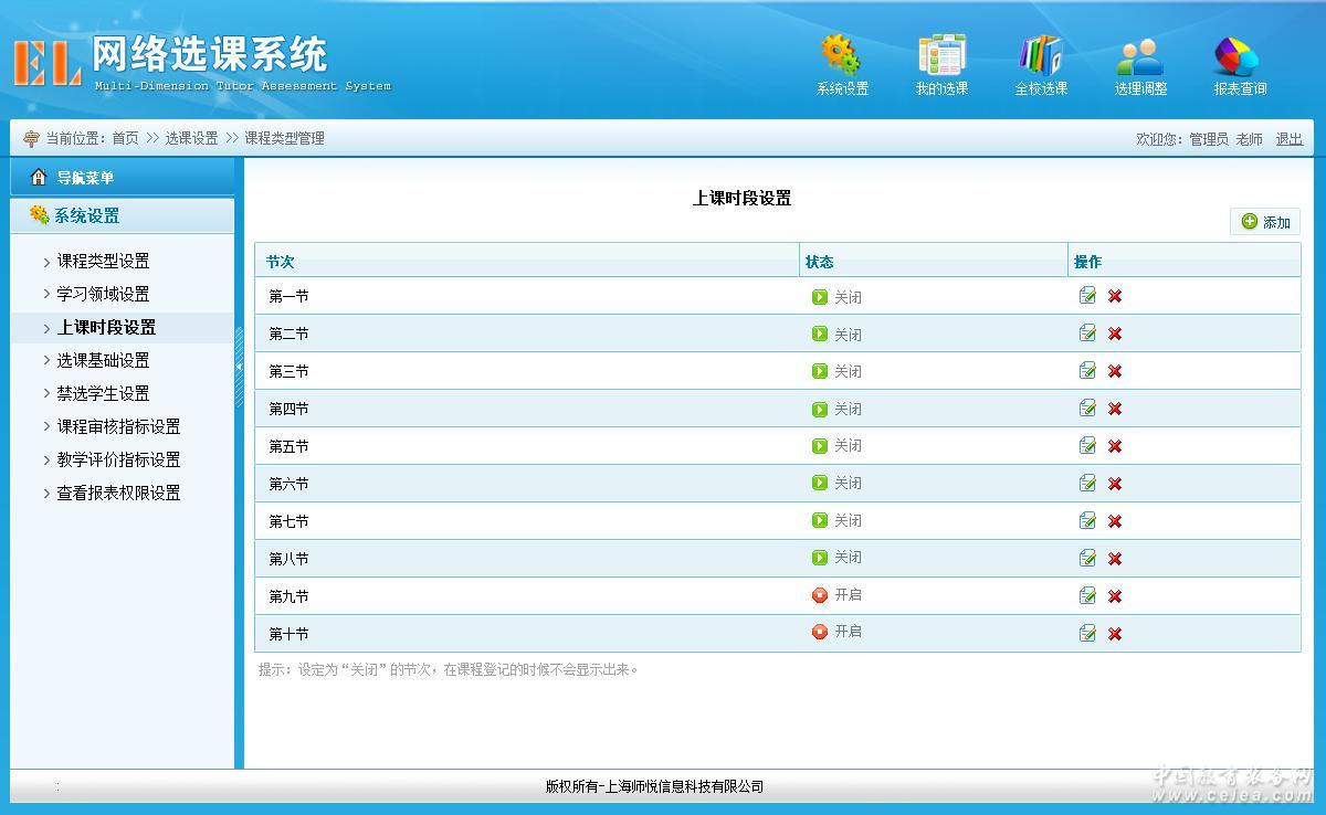 上課時(shí)段設(shè)置界面