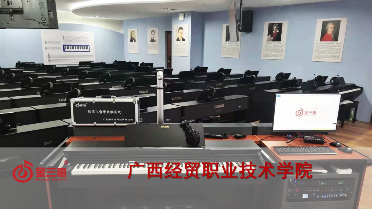 廣西經(jīng)貿(mào)職業(yè)技術(shù)學(xué)院的電鋼琴教室正式開始使用,本校數(shù)字化音樂教室由北京金三惠科技有限公司負責提供、安裝、培訓(xùn)。