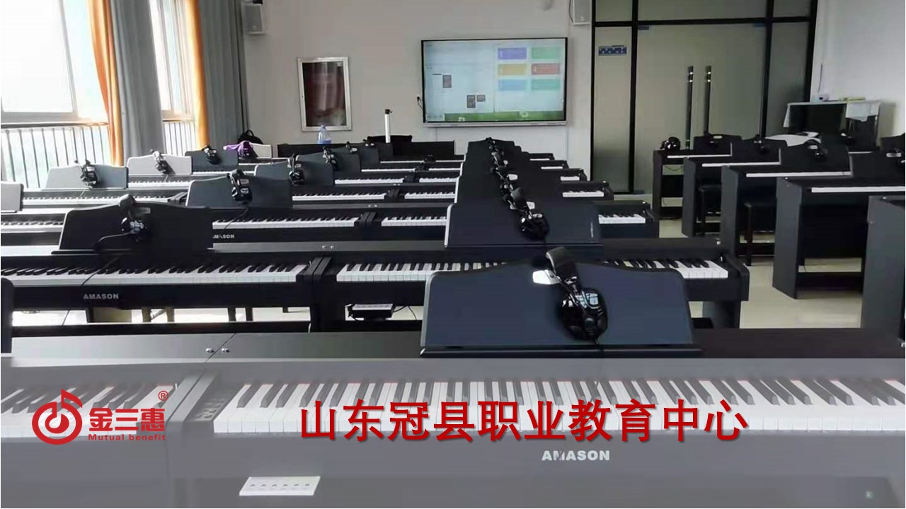 山東冠縣職業教育中心的電鋼琴教室正式開始使用,本校數字化音樂教室由北京金三惠科技有限公司負責提供、安裝、培訓。