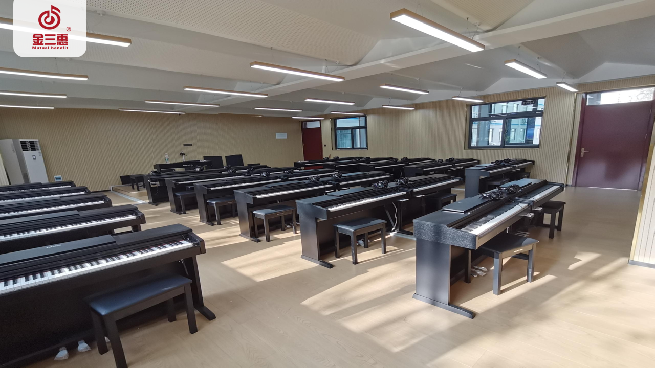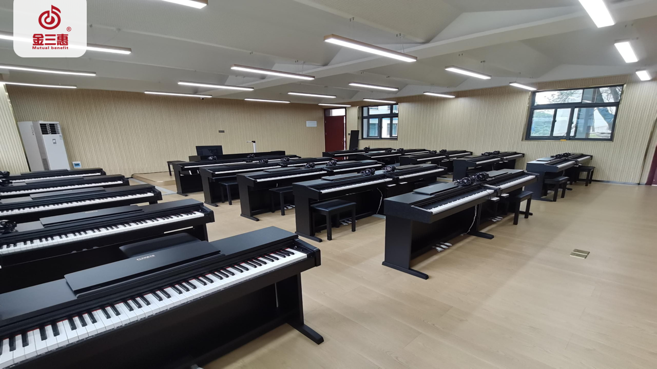 2023年8月,金三惠數字音樂教室走進河南省信陽市文化藝術職業學校,為學生提供了26+1的電鋼琴教室,配備了金三惠電鋼琴教學系統、電鋼琴、數字音樂教學儀等教學教具等。