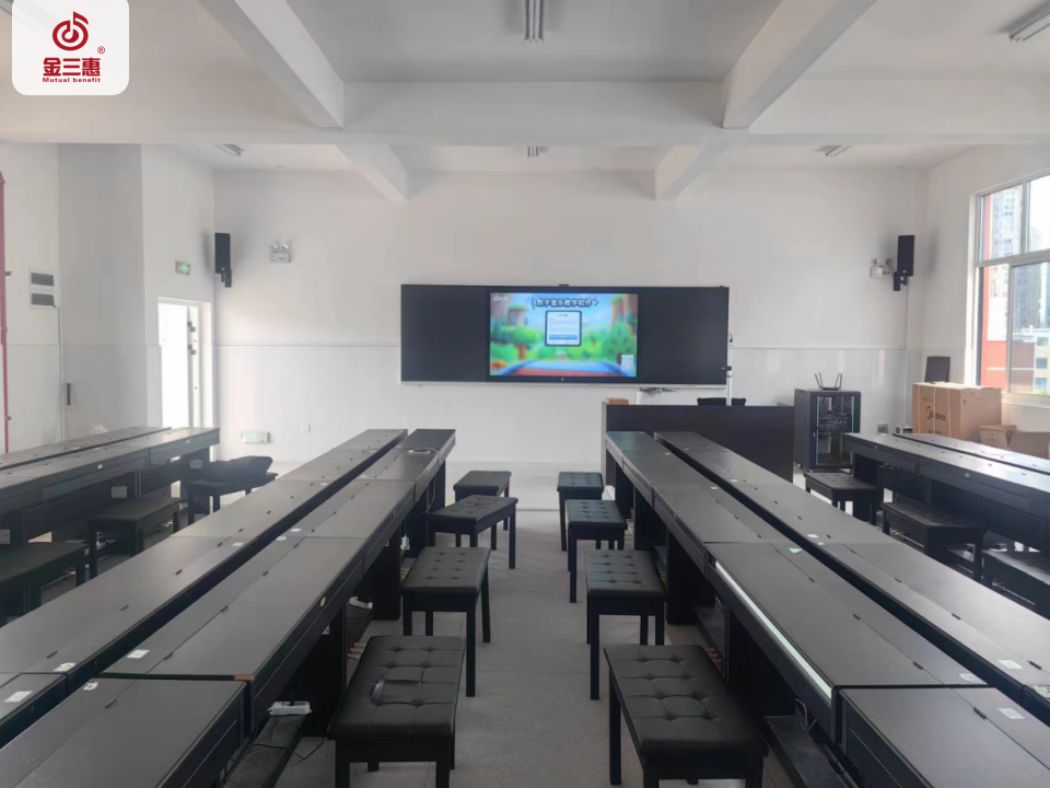 2023年9月,金三惠數(shù)字音樂教室走進(jìn)湖南省邵陽市大祥區(qū)邵陽工業(yè)學(xué)校,為學(xué)生提供了80+1的電鋼琴教室,配備了金三惠電鋼琴教學(xué)系統(tǒng)、電鋼琴、數(shù)字音樂教學(xué)儀等教學(xué)教具等。