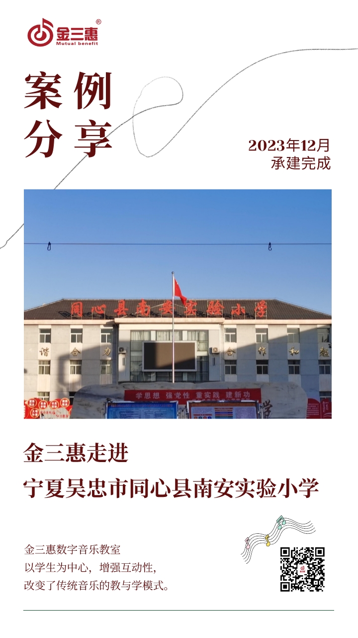 2023年12月,金三惠數字音樂教室走進寧夏吳忠市同心縣南安實驗小學,為學校提供了25+1的電鋼琴教室配備了金三惠電鋼琴教學系統、電鋼琴、數字音樂教學儀等教學教具等。電鋼琴室-金三惠 (jinsanhui.com)