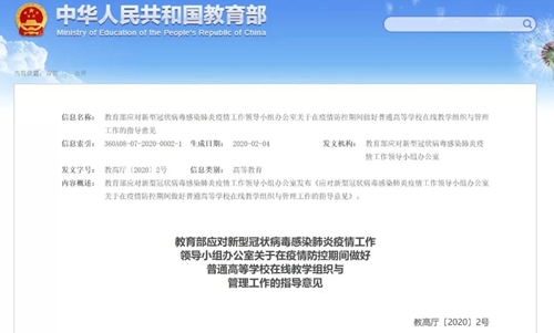 《在疫情防控期間做好普通高等學(xué)校在線教學(xué)組織與管理工作的指導(dǎo)意見》