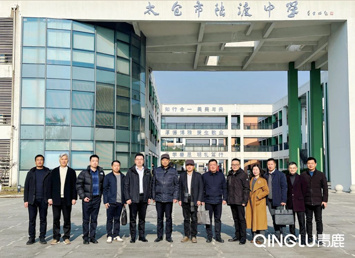 調(diào)研組在太倉市陸渡中學書記、校長沈兵等校領導的陪同下,參觀陸渡校園,共話智慧教育。