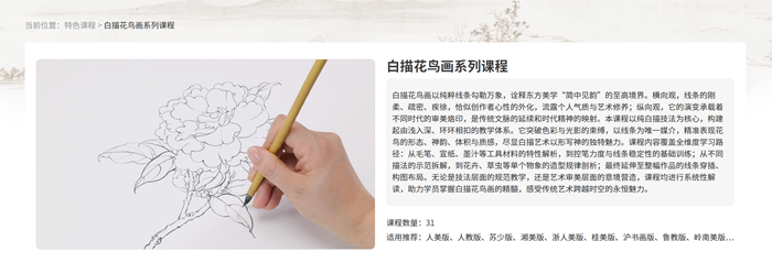 “適用推薦”模塊,以“藝海拾貝,視圖融教”為導向,深耕美育沃土,開拓教學新境。它將教育部審定的人美版、人教版、蘇少版等14套主流教材盡數收納,再以巧思為橋,促成資源與多版本、多學段教材的深度契合。既保障了覆蓋范圍如星海般廣博,更讓教學的實用價值落地生根。