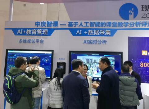 此次展會中慶展示了中慶智課應用人工智能技術在數據采集、教育管理、教學教研、學生管理等方面為用戶提供數據服務的全流程演示。