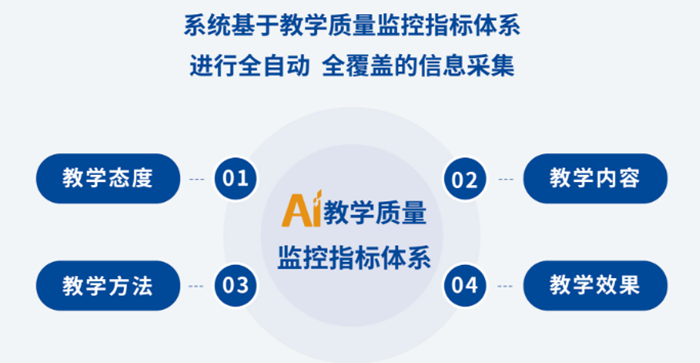 系統的核心基于現代中慶AI教學質量監控指標體系,通過覆蓋教學態度、教學內容、教學方法、教學效果等多個維度的20余項檢測指標,提供自動巡課、自動報警、課堂自動評分、數據自動統計等功能。