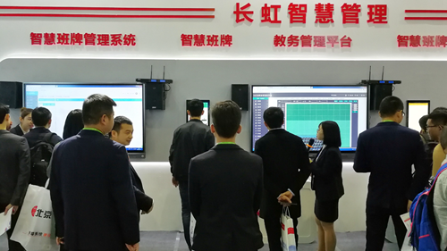 長(zhǎng)虹攜智慧教室、云智能交互方案、打通一三產(chǎn)業(yè)的智慧廚房系統(tǒng)和教務(wù)管理平臺(tái)、智慧班牌、云交互一體機(jī)等涵蓋從智慧教學(xué)、智慧管理、智慧服務(wù)到智慧環(huán)境完整教育信息化產(chǎn)品體系亮相展會(huì)。憑借突出的方案理念和產(chǎn)品實(shí)力,一開幕就贏得了行業(yè)人士和參觀者的廣泛關(guān)注。