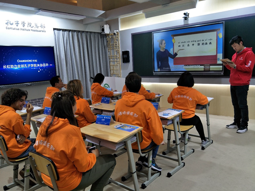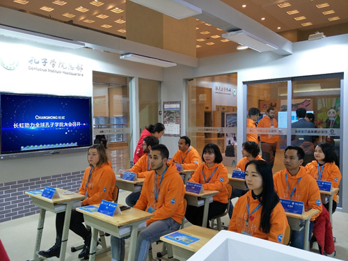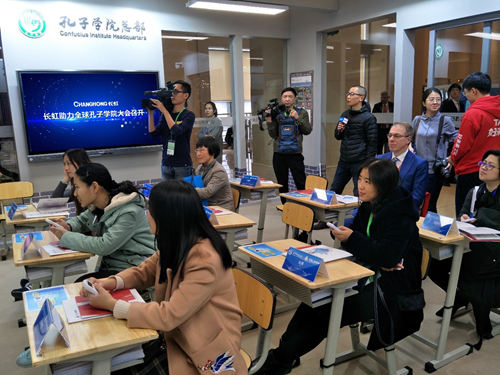 2月4日,第十三屆全球孔子學(xué)院大會(huì)在成都開(kāi)幕,來(lái)自150多個(gè)國(guó)家和地區(qū)的大學(xué)校長(zhǎng)、孔子學(xué)院代表近1500人參加大會(huì),共話漢語(yǔ)海外教學(xué)和文化交流。長(zhǎng)虹助力全球孔子學(xué)院大會(huì),為第十三屆全球孔子學(xué)院大會(huì)送了一份別樣的禮物—孔子學(xué)院全球首間智慧教室,受到了現(xiàn)場(chǎng)中外大學(xué)校長(zhǎng)、孔子學(xué)院代表的一致好評(píng)。