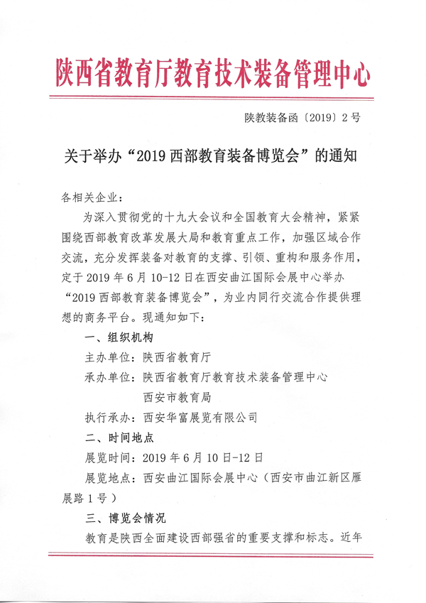 關于舉辦“2019西部教育裝備博覽會”的通知