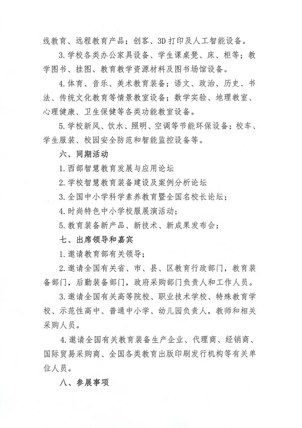 2.邀請全國有關省、市、縣、區(qū)教育行政部門,教育裝備部門,后勤裝備部門,政府采購部門負責人和工作人員。