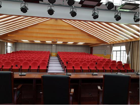 多功能報告廳作為學校開展各類會議報告、文藝演出場地,對現場音響系統的功能定位和音質表現力有較高的要求。佳比根據報告廳場地的高度、擴聲面積以及多功能用途的需求,進行了綜合分析,做到科學合理的布局、選配。