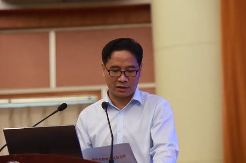市委教育工委委員、市教委副主任劉宴兵做了題為《突出質量、促進公平,努力提升重慶高校一流課程建設新水平》的講話,他對高等教育事業(yè)發(fā)展時代新特征、“金課”建設的豐富內涵以及金課的建、用、學、管各環(huán)節(jié)進行了全面闡釋,并要求各高校要站在新的歷史起點,以金課建設為契機,支撐引領高等教育現(xiàn)代化發(fā)展,推動高等教育教學理念更新、模式變革、體系重構,不斷提升高等教育質量,寫好重慶高等教育“奮進之筆”。為建設學習型社會、學習型政黨、學習型強國積極發(fā)出重慶聲音,貢獻重慶智慧和重慶方案。