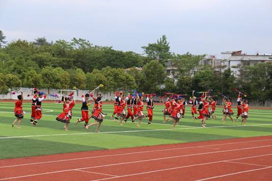 全南二中學(xué)生在表演“瑤族花棍舞”