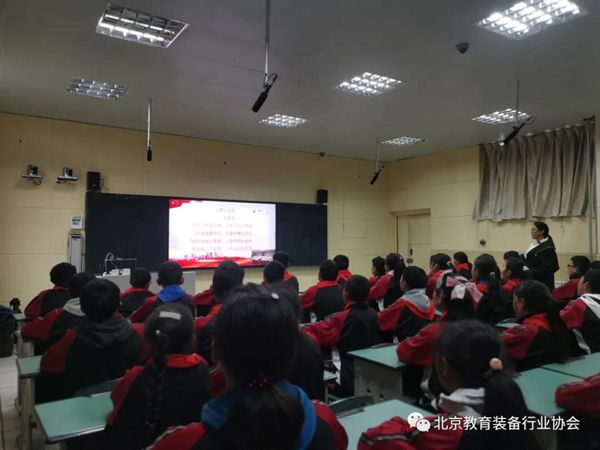 從遵義到瀘定橋再到天安門,三地師生共學互動,共同呈現一堂高質量的黨史學習課程。在北京參加聽課的領導有:北京市教育技術設備中心副主任兼北京教育裝備行業協會會長柴旭津,北京教育裝備行業協會副會長兼秘書長陳謙、東城區教育技術裝備中心主任崔保民,崇文小學校長白淑蘭、黨支部書記李月華等。