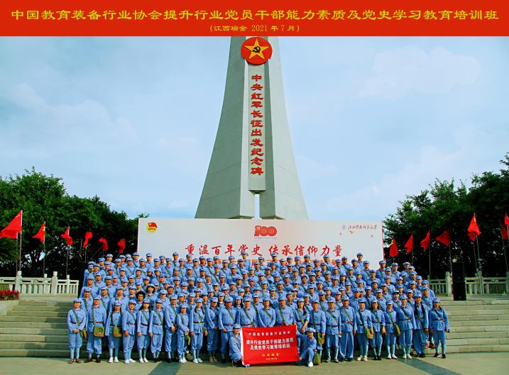 2021年7月11—12日,中國(guó)教育裝備行業(yè)協(xié)會(huì)(以下簡(jiǎn)稱協(xié)會(huì))在江西瑞金舉辦了2021教育裝備行業(yè)提升干部能力素質(zhì)及黨史學(xué)習(xí)教育培訓(xùn)班。全國(guó)各省區(qū)市教育裝備行業(yè)黨員代表共220余人參加了培訓(xùn)班。本次活動(dòng)旨在組織行業(yè)黨員跟著紅色地標(biāo)學(xué)黨史、傳承紅色基因、汲取奮進(jìn)力量,不斷鞏固和夯實(shí)黨的執(zhí)政根基。