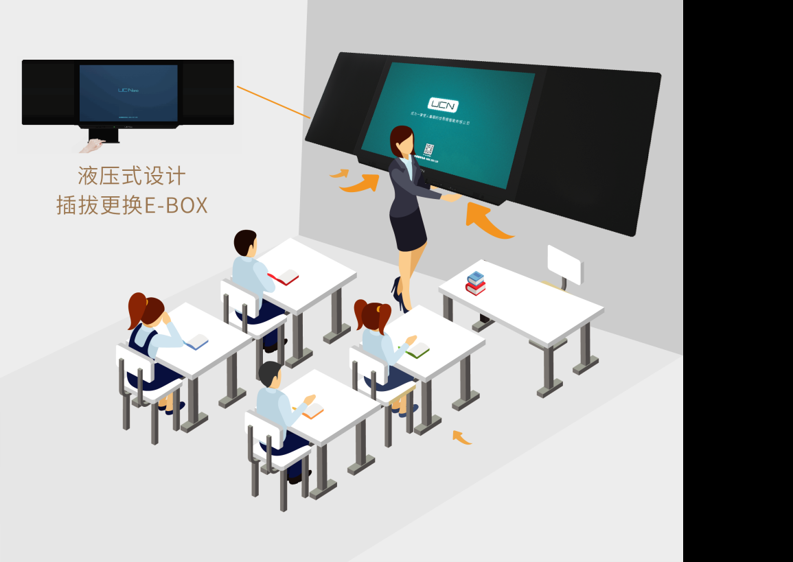 Box設(shè)計(jì),將視頻卡、OPS等易損部件全部集成在一個(gè)小盒子里,如果出現(xiàn)故障,只需直接拉出更換備份E-Box。無需等待上門維修服務(wù),不耽誤學(xué)校正常教學(xué)活動(dòng)。