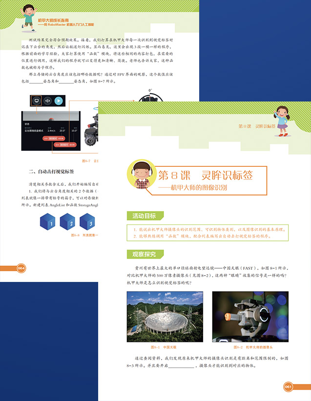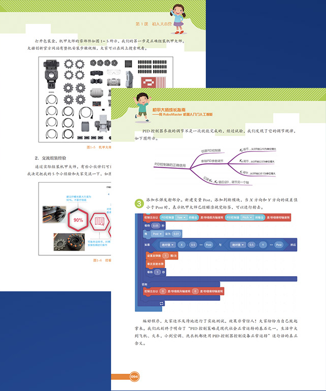 《機(jī)甲大師成長指南——用 RoboMaster 機(jī)器人入門人工智能》一書,從日常生活出發(fā),凸顯“做中學(xué)”的教育理念,利用大疆創(chuàng)新教育機(jī)器人RoboMaster S1,通過一個(gè)個(gè)生動(dòng)有趣的探究與實(shí)踐活動(dòng)展開課程設(shè)計(jì),突出了生活性和 趣味性,為剛剛接觸人工智能教育的學(xué)生提供了一系列可選的人工智能體驗(yàn)活動(dòng)。