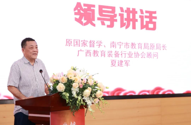 原國家督學、南寧市教育局原局長、廣西教育裝備行業協會顧問夏建軍為活動致辭。他對協會十年來的工作給予了充分的肯定,站在教育裝備行業高質量發展的角度,對協會提出了更高更新的要求,寄予了深厚殷切的期望。