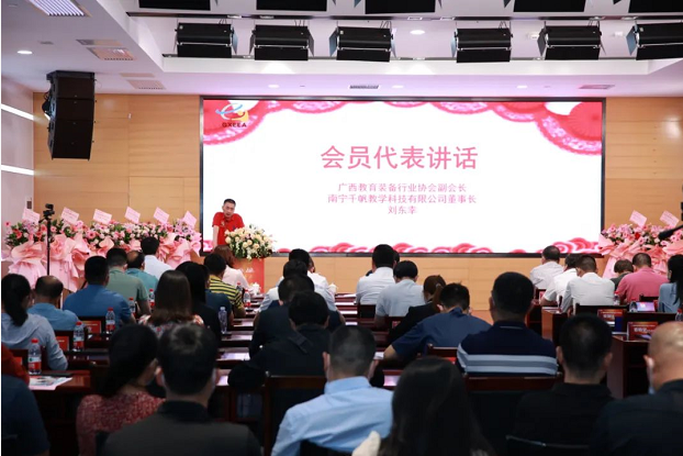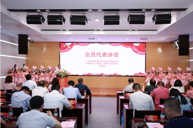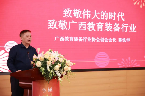 協會創會會長陳鐵華作了主題為“致敬偉大的時代,致敬廣西教育裝備行業”的講話。他和與會人員分享了創立協會的初衷及過程,回顧了協會十年來的發展歷程。十年來,協會以“為政府服務,為教育服務,為會員發展服務”的宗旨,服務教育教學的需求和裝備產業的發展,和教育同呼吸,共命運,在專業引領、規范行業、愛心助學、創辦示范等多方面開展工作,取得了一定的成績。這都受益于這個偉大的時代,受益于每一位為教育事業努力和付出的人。他表達了對未來的教育裝備行業發展的期許,并期盼行業企業把握機遇,再創輝煌!