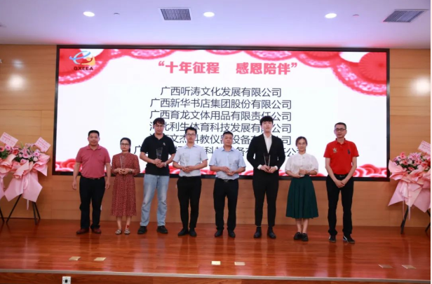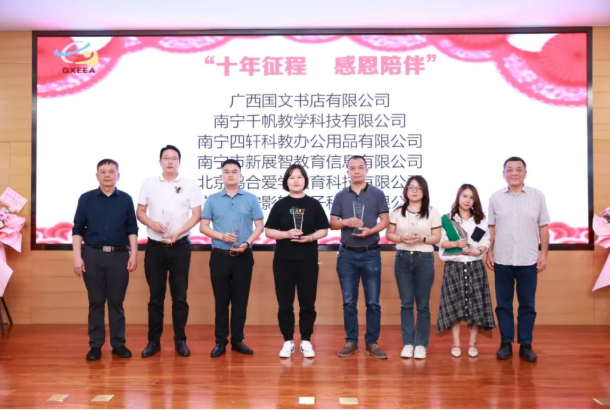 為紀念協會第一個輝煌十年,協會為廣西國文圖書有限公司等23家十年來與協會同甘共苦、并肩作戰的會員企業頒發了”同心同德 共享共贏”在會十年會員紀念獎杯!