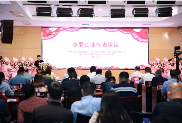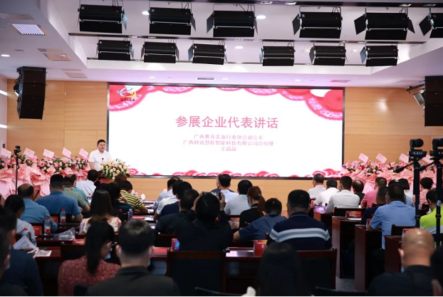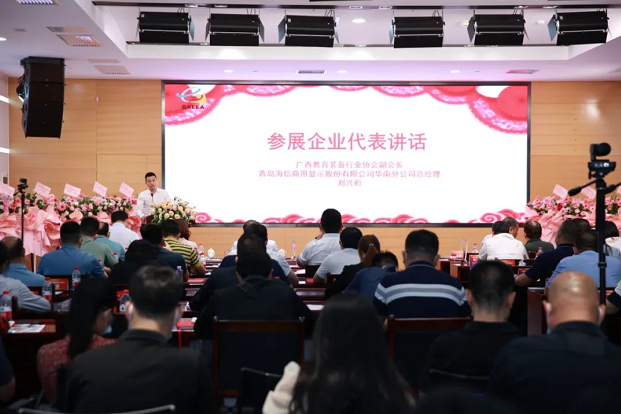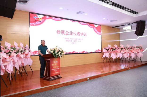 協會副會長、廣西科訊慧桂公司總經理王晶晶,協會副會長、青島海信華南分公司總經理劉興府,協會副會長、海威集團副總經理梁革平,學前教育裝備分會秘書長、廣西仟童公司經理陳小亮作為歷屆參展代表和新參展代表發言。通過展示會的平臺,企業在服務教育的同時,也同時宣傳企業、宣傳產品、互動交流,實現也共享共贏。