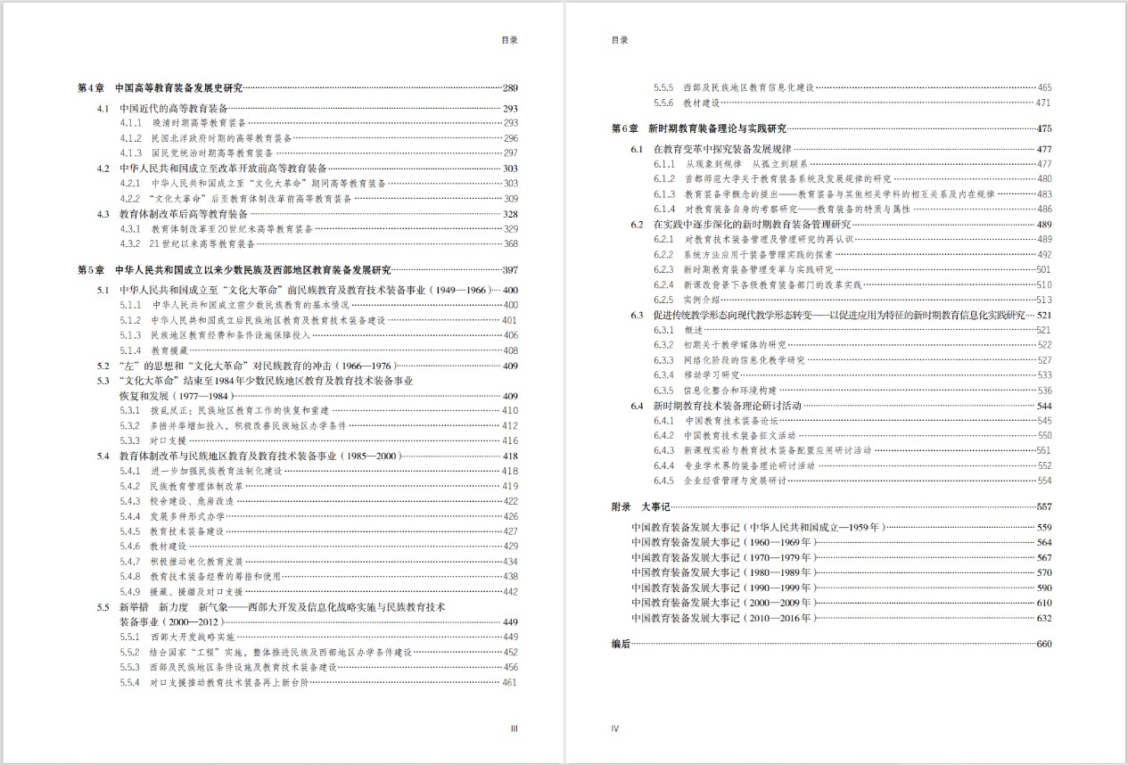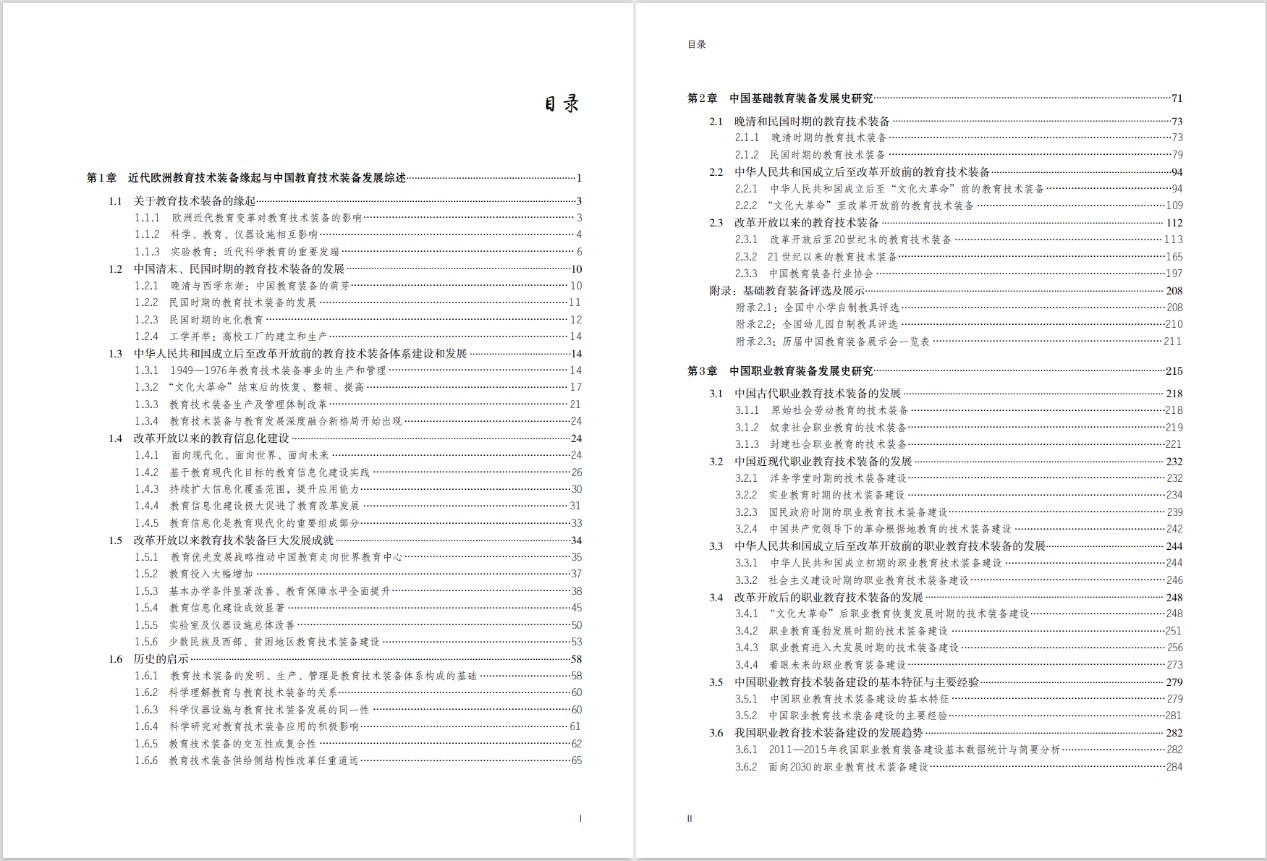 本書由6章和1附錄組成,分別是“近代歐洲教育技術裝備緣起與中國教育技術裝備發展綜述”“中國基礎教育裝備發展史研究”“中國職業教育裝備發展史研究”“中國高等教育裝備發展史研究”“中華人民共和國成立以來少數民族及西部地區教育裝備發展研究”“新時期教育裝備理論與實踐研究”6章,附錄“大事記”全面記述了中華人民共和國成立以來教育裝備領域開展的重要工作和發生的重大事件。全書總計122萬字。