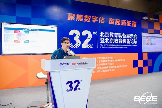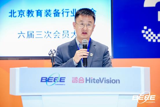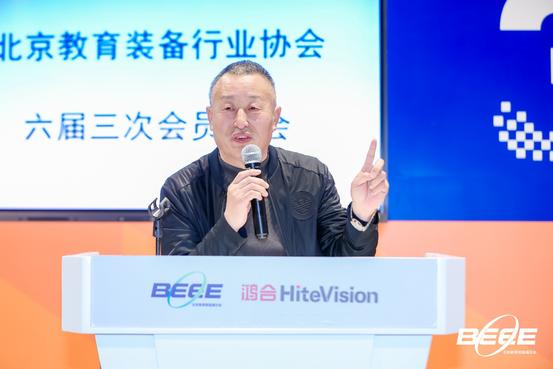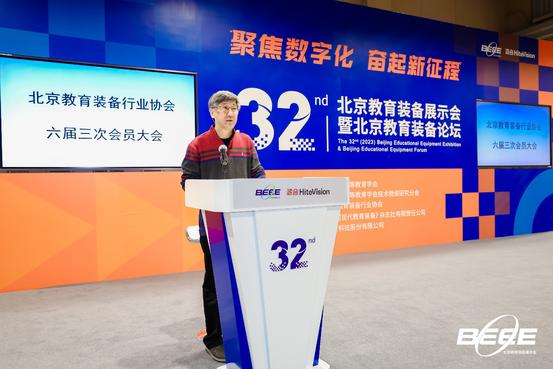 副會長單位北京市東城區教育技術裝備中心主任崔保民以“回歸原點再出發”為題進行發言,他提到自己對教育裝備行業在疫情三年的磨練下產生了許多思考,并認為教育裝備行業想要在當下時代轉軌就要找到自己的原點,即初心不變。崔保民副會長提出,教育現代化建立在教育技術裝備現代化基礎之上,教育裝備行業面對挑戰的當下也是迎接機遇的未來。