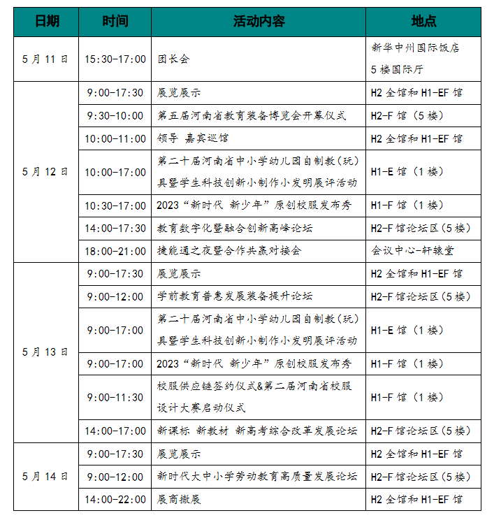 附件:第五屆河南省教育裝備博覽會活動排期