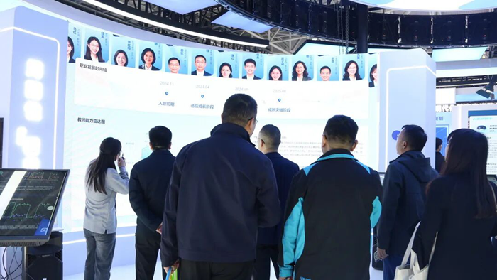 現(xiàn)代中慶參展并打造的“未來教師成長AI體驗(yàn)中心”,圍繞成長陪伴、智能管理、周期畫像三大模塊的諸多精彩體驗(yàn),充分展現(xiàn)了AI賦能教師專業(yè)發(fā)展全周期的創(chuàng)新應(yīng)用,成為展會(huì)關(guān)注焦點(diǎn)。