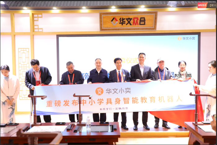 10月24日上午,華文眾合旗下首款中小學具身教育機器人華文小奕發布會在會場舉行。教育界專家學者、學校領導以及媒體人士齊聚一堂,共同見證這款為中小學人工智能教育量身打造的創新產品的亮相。