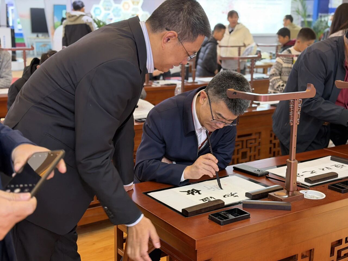 除了華文小奕機器人,華文眾合展位的核心產品第九代智慧書法教室和智慧粉筆教室同樣備受矚目,其傳統與科技的完美結合,引得教育工作者、高校領導及對書法感興趣的社會各界人士紛紛駐足參觀體驗。