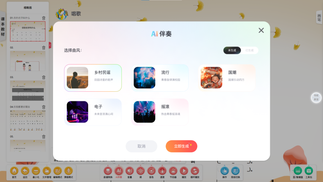 在培訓過程中,劉浩然主任還給教師們分享了金三惠數字音樂教學軟件的AI工具,如AI創(chuàng)編、AI伴奏、AI轉譜等,激發(fā)了教師們的創(chuàng)新思維,為數字化課程的設計提供了豐富的素材和靈感。