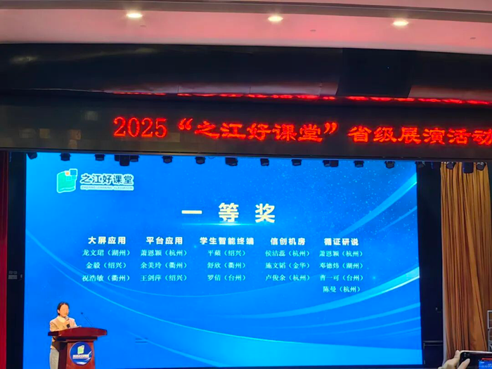 近日,由浙江省教育技術(shù)中心主辦“2025之江好課堂”省級展演活動在杭州圓滿落幕。本次活動以“數(shù)智賦能跨學(xué)科融合創(chuàng)新實踐”為主題,匯聚全省15支教師戰(zhàn)隊帶來45堂“融合AI、智能終端、信創(chuàng)”等前沿技術(shù)的優(yōu)質(zhì)課例,吸引千余名教育工作者現(xiàn)場觀摩。