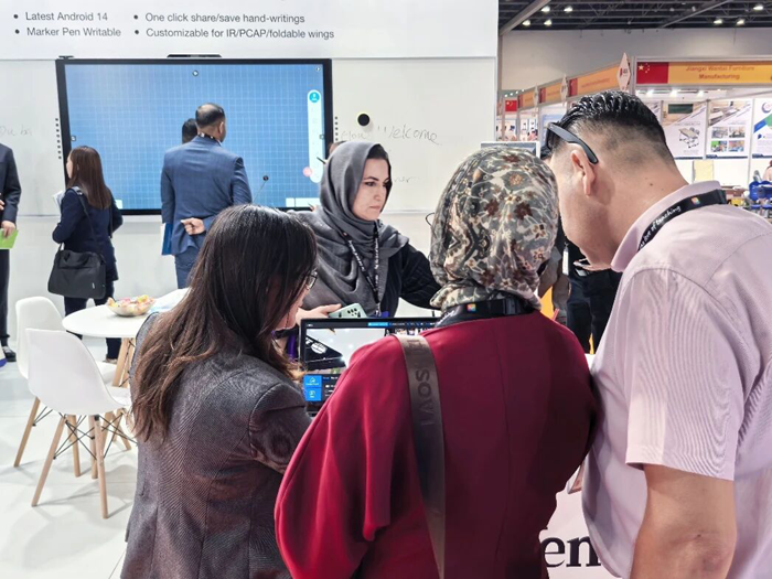 展會(huì)期間,文香展位始終人流涌動(dòng),來自阿聯(lián)酋、沙特阿拉伯、埃及等中東地區(qū)及全球各地的專業(yè)觀眾紛紛駐足體驗(yàn)、深入洽談。眾多教育部門代表、學(xué)校管理者及行業(yè)合作伙伴對文香產(chǎn)品的科技實(shí)力、場景適配性給予高度評價(jià),現(xiàn)場達(dá)成多項(xiàng)合作意向。未來,文香將持續(xù)以技術(shù)創(chuàng)新為核心,聚焦教育行業(yè)痛點(diǎn),打造更多貼合全球用戶需求的智能教育解決方案,助力世界各地教育高質(zhì)量發(fā)展,讓科技賦能教育無遠(yuǎn)弗屆。