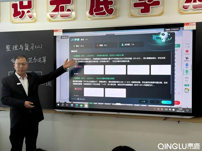 會(huì)議在“AI+教學(xué)”展示課中啟幕,青西小學(xué)的朱老師在《整理與復(fù)習(xí)—分?jǐn)?shù)的混合運(yùn)算》一課中,以青鹿智慧紙筆為核心工具,生動(dòng)演繹了數(shù)據(jù)驅(qū)動(dòng)下的精準(zhǔn)教學(xué)。