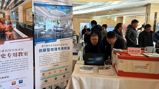 在展覽交流環(huán)節(jié),中教啟星集中展示了包括地理VR教學(xué)系統(tǒng)、歷史VR教學(xué)系統(tǒng)、地理實(shí)驗(yàn)套裝、AI地理實(shí)驗(yàn)教學(xué)系統(tǒng)在內(nèi)的一系列核心產(chǎn)品,吸引了眾多參會(huì)教師代表駐足體驗(yàn),深入咨詢(xún)。中教啟星以科技賦能教學(xué),為地理、歷史等學(xué)科教學(xué)提供了全新的授課形式與課堂體驗(yàn),有效助力教育教學(xué)方式創(chuàng)新與教育質(zhì)量提升。