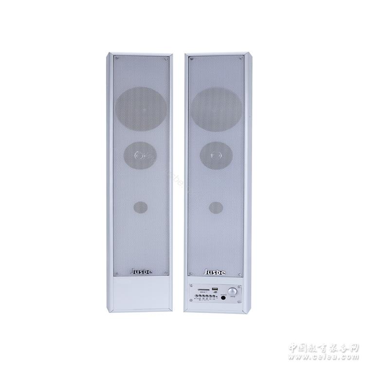 主要技術參數:額定功率:30W;額定阻抗:4Ω;頻率響應:68Hz-18kHz;驅動器:4寸低音×1, 高音×1;額定輸入電平:話筒 15mV(非平衡);輸入:1路話筒輸入接口,1組立體聲輸入;靈敏度:<500MV;信噪比:85dB;最大聲壓級:78dB;分離度:≥40dB;箱體型式:倒相式;箱體及外飾:高密度中纖板(白色)箱體,鋼網;安裝:標配壁掛架;超薄機身,箱體尺寸(只): 150×84×700(寬*厚*高,單位:mm);凈重:6.5kg/對。
