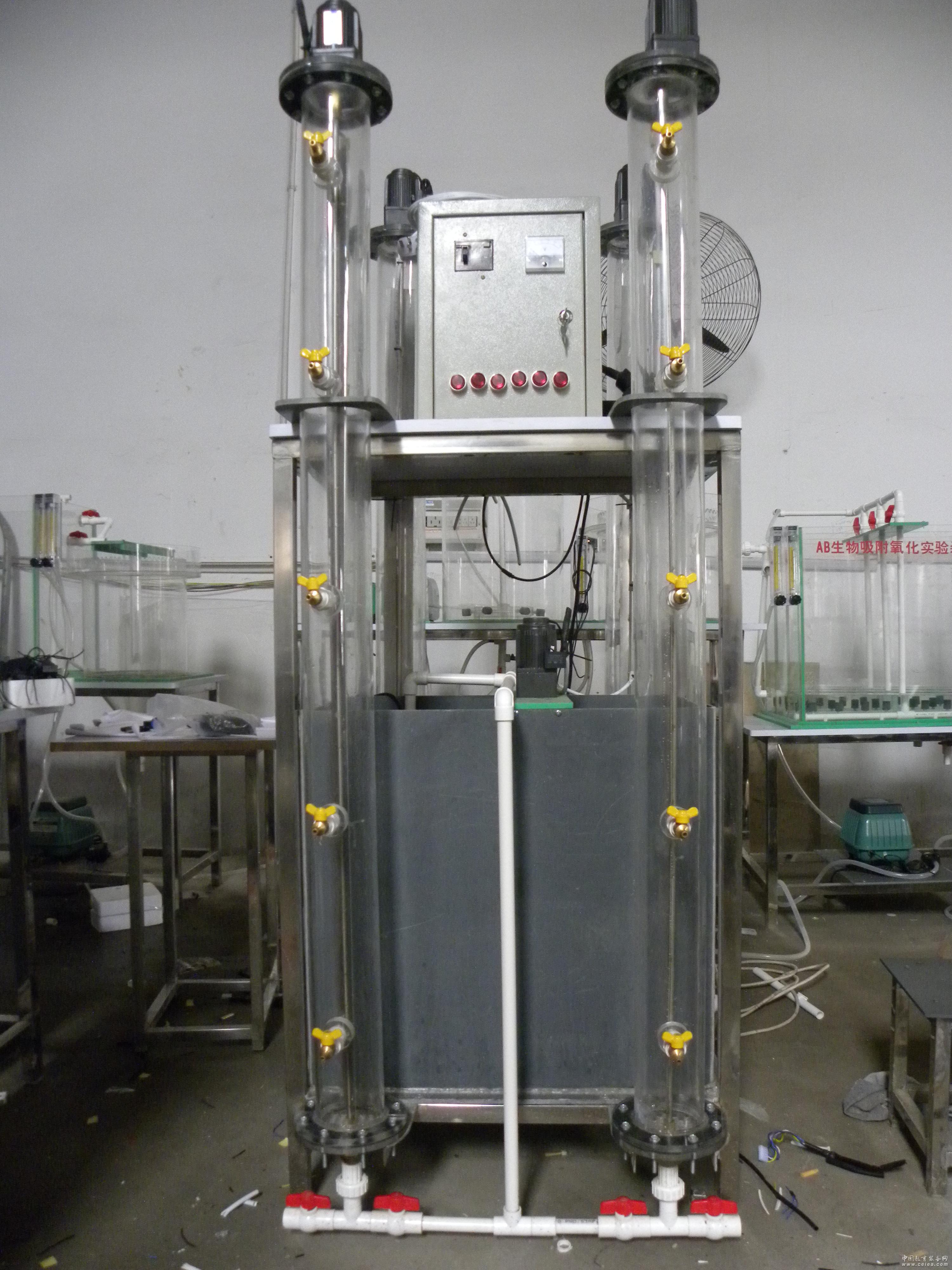 產(chǎn)品詳細(xì)介紹實(shí)驗(yàn)?zāi)康?br/>1、通過(guò)實(shí)驗(yàn),掌握污水沉降的實(shí)驗(yàn)方法; 2、加深理解沉淀的基本概念和雜質(zhì)的沉降規(guī)律; 3、對(duì)各種沉降規(guī)律與概念的理解,掌握及測(cè)定各種沉淀的曲線與測(cè)定方法(包括掌握活性污泥沉淀特性曲線的測(cè)定方法、了解固體通量法的分析方法、比較累積沉淀泥量法與累積曲線的共同點(diǎn)); 4、借助于這些等效率曲線計(jì)算對(duì)應(yīng)于某一停留時(shí)間的懸浮物去除率等。 技術(shù)參數(shù) 沉淀柱采用有機(jī)玻璃材質(zhì):6根、沉淀柱外形尺寸:直徑×高=φ100mm×1800mm、電源功率:220V,500W、最大進(jìn)水速度:3000L/H。 產(chǎn)品規(guī)格與配置 原水箱1個(gè)、沉淀柱6根、潛水泵1臺(tái)、攪拌裝置6套、取樣口36個(gè)、各沉淀柱進(jìn)水閥門(mén)1套、各沉淀柱放空閥門(mén)1套、排水管1套、取樣檢測(cè)點(diǎn)、電控箱(鋅合金彈跳鎖)1只、漏電保護(hù)開(kāi)關(guān)、按鈕開(kāi)關(guān)、連接管道和球閥、可移動(dòng)式不銹鋼實(shí)驗(yàn)臺(tái)架(配萬(wàn)向輪及禁錮角)等組成。 |