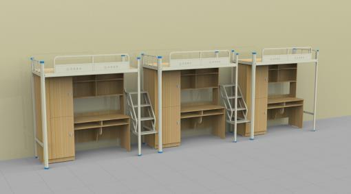 產(chǎn)品詳細介紹一、規(guī)格尺寸 1、單邊(三人位)尺寸:6640*900*2085mm 二、鐵件部分材質說明: 1、床立柱:采用 61*61mm(六邊形棱型管)的Q195 材質六邊形棱型管,立柱上下端加裝工程 塑料防護套件,保證架體與地面接觸無聲,防止學生擦掛; 2、床橫梁:采用 32*72*1.2mm 的 Q195 材質(P 型管)型材,冷軋鋼板采用一次性滾壓成型,增 加承受能力,整體牢固美觀; 3、護欄:采用 25*1.2mm 方管鑲 1.0mm 油壓成型鋼板; 4、床橫梁:采用 6 根/位 25*25*1.2mm 方管,增強承重能力; 3 六人間 (三人 位梯步 式)連 體公寓床 5、步梯:采用 25*25*1.2mm 的Q235 材質方管,步梯踏板采用 1.8mm 鋼板一次性沖壓成型,步 梯與床立柱連接; 6、床板:采用 12mm 厚 E1 級環(huán)保多層板; 7、鏈接方式:采用 25*195*2mm“H”型卡扣式連接(無螺絲連接,整體全隱裝); 表面處理:鋼件焊接采用二氧化碳保護焊,金屬表面經(jīng)過打磨、脫脂、酸洗、水洗、中和、表 調、磷化、烘干,再采用杜邦塑粉靜電噴塑處理、高溫固化等工序。 三、木質家具材料說明 1、衣柜:采用上下兩層設計,突出最大儲物空間,衣柜上層內配置(直徑 19mm)不銹鋼掛衣 桿,基材采用 18mm 厚度的 E1 級環(huán)保板材制作;五金件:采用優(yōu)質五金配件;柜門鎖:采用明鎖 暗掛,底部加裝 9mm 高靜音,防潮腳墊; 2、學習桌:基材采用 18mm 厚 E1 級環(huán)保板材,封邊:截面處采用優(yōu)質 1.2mm 厚封邊條,桌面: 采用 25mm 厚E1 級環(huán)保板材,甲醛釋放量達到國家 E1 級環(huán)保標準,底部安裝 9mm 高的靜音防滑 防潮腳墊; 四、床體布局 1.床位長度采用 2 個1.92 米+1 個2 米的錯開式布局,適用于房間尺寸有限的情況下滿足不同 身高的學生需求。 |