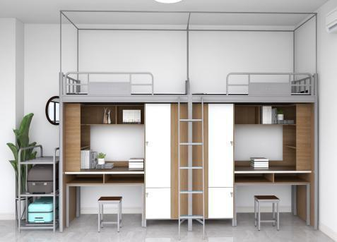 產品詳細介紹1、規格:L4000mm×W900mm×H2085/2885mm 2、床邊立檔:立柱采用 60mm×60mm×1.2mm 棱形管,與 20mm×1.2mm 圓管、25mm×25mm×1.2mm 矩管、 25mm×50mm×1.2mm 矩管套用立柱上下兩端加專用內塞,保證架體與地面接觸無聲,防止學生擦掛。 3、床中立檔:立柱 60mm×60mm×1.2mm 方管、25mm×25mm×1.2mm 矩管套用 4、床橫梁:床梁 85mm×40mm×1.2mm 刀型材 5、床鋪橫撐:30mm×20mm×1.2mm 矩管七根 6、床前后方和床立柱連接采用卡扣式連接 7、床護欄:25mm×25mm×1.2mm 方管和 15mm 三聚氰胺飾面板套用,高 300mm。 7 四人間 (兩人 位爬梯 式)連 體公寓床 8、床梯:20mm×40mm×1.2mm 橢圓管;橫管 25mm×25mm×1.2mm 方管,帶防滑塑膠踏板,踏板下襯 1.5mm 厚 冷軋鋼板,防滑踏板尺寸: L320mm×W75×D15mm,踏板上帶 12 顆夜光顆粒; 9、蚊帳架:φ16mm×1.0mm 圓管和 19mm×1.0mm 圓管套用,連接部位必須有螺栓固定 10、衣柜:規格L600mm×W750mm×H1690mm,柜體分上下二層,上層為儲物空間,下層為掛衣空間 11、學習桌:桌面規格 1133mm×600mm×25mm,以優質 E1 級環保中纖板為基材,面貼 0.7mm 厚優質環保防火 板,桌面正面封邊采用中空E 型鋁合金嵌入式封邊,倒鴨嘴邊; 12、桌下儲物柜:規格L400mm×W450mm×H725mm,結構設計為上抽下柜。 13、雙面五層側書架:規格L480mm×W750mm×H1690mm,桌上三層為書架,桌下兩層為鞋架 14、正面書架:寬度 240mm,長度與書桌匹配 15、所有柜門、抽屜面板均帶明鎖暗扣型鎖扣,便于維修更換 16、所有板材均為 15mm 厚 E1 級環保三聚氰胺板,封邊采用 1.5mm 優質同色PVC 熱熔膠封邊; 17、床鋪板:采用 12mm 厚 E1 級環保實木多層板。 18、衣柜、書架、桌下儲物柜底部須加 80mm 高防潮架,采用 20*20*1.0mm 矩管。 19、本項目所有鋼制件表面必須經過嚴格的打磨、拋光、除油、除銹、陶化烘干處理后,高壓恒溫環氧樹脂固 體粉末靜電噴涂處理。 |